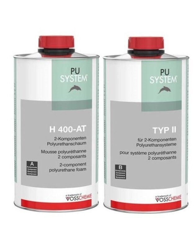 H400-AT maišomas su komponentu B (Type II) ir sukietėjus yra atsparus praskiestoms rūgštims, šarmams ir vandeniui. Dėl ilgo reakcijos "starto" laiko ir maišymo santykio, šias putas be problemų galima gaminti sumaišant rankomis. Mechaninio sumaišymo atveju sumažinamas tūrinis svoris ir reakcijos pradžios laikas, o putoms "kylant" uždarose formose, padidėja tūrinis svoris ir slėgis formos sienelėms.